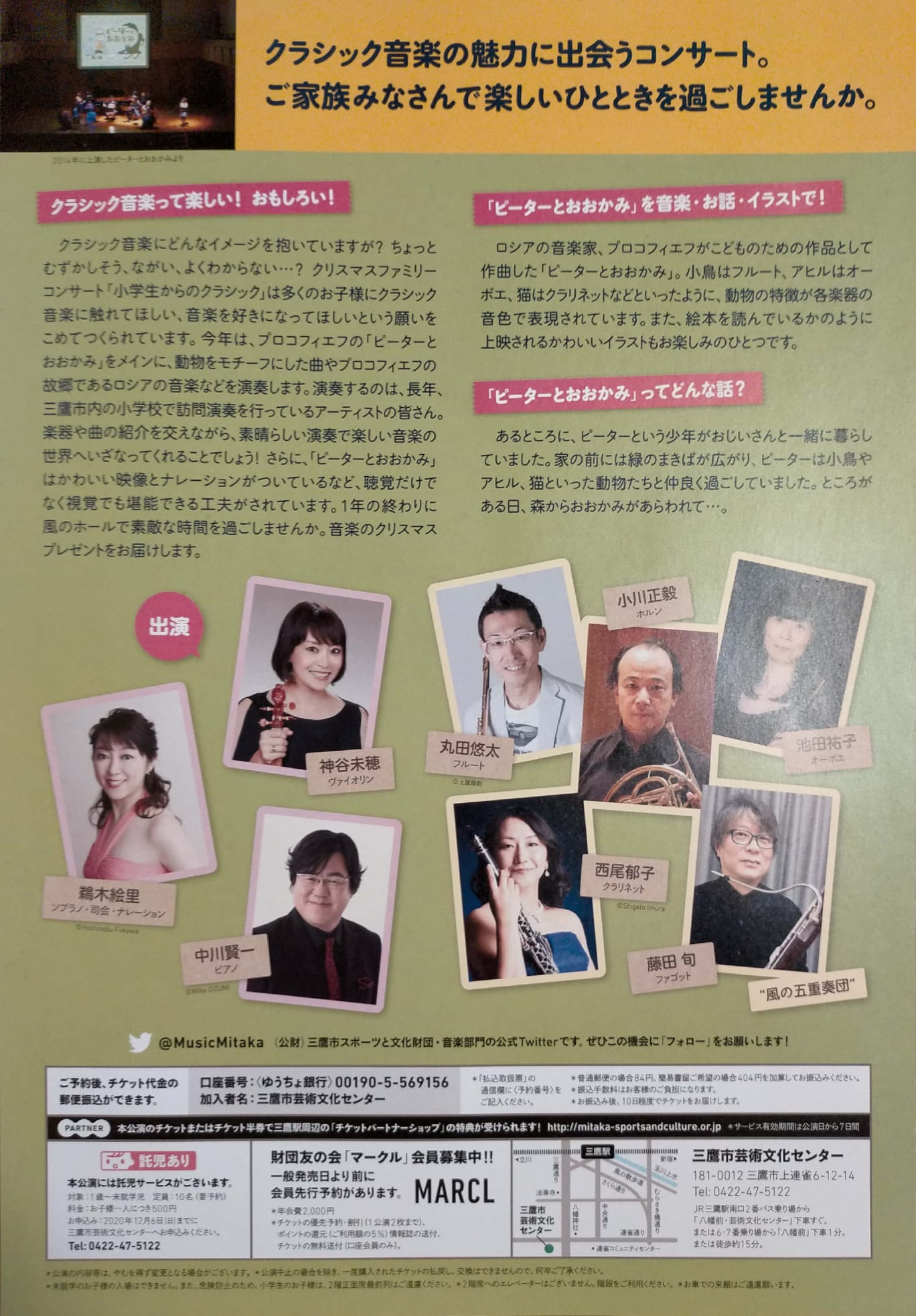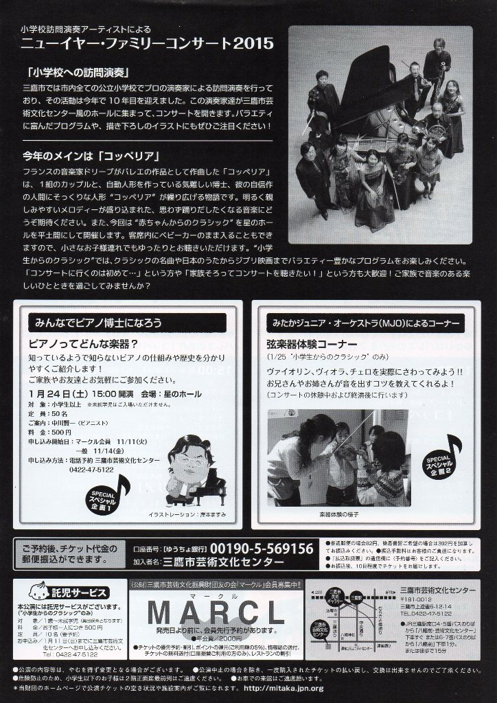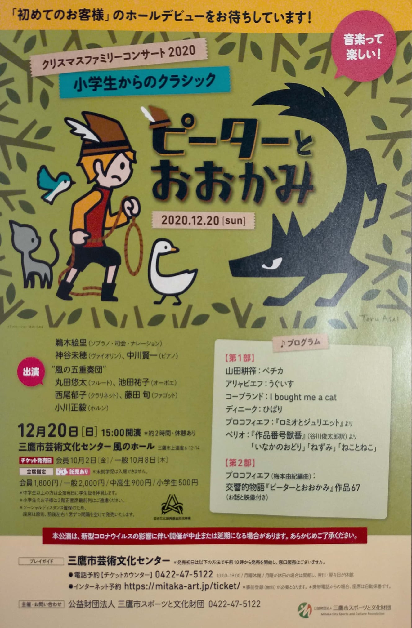 電話:0422-47-5122(三鷹市芸術文化センターチケットカウンター)