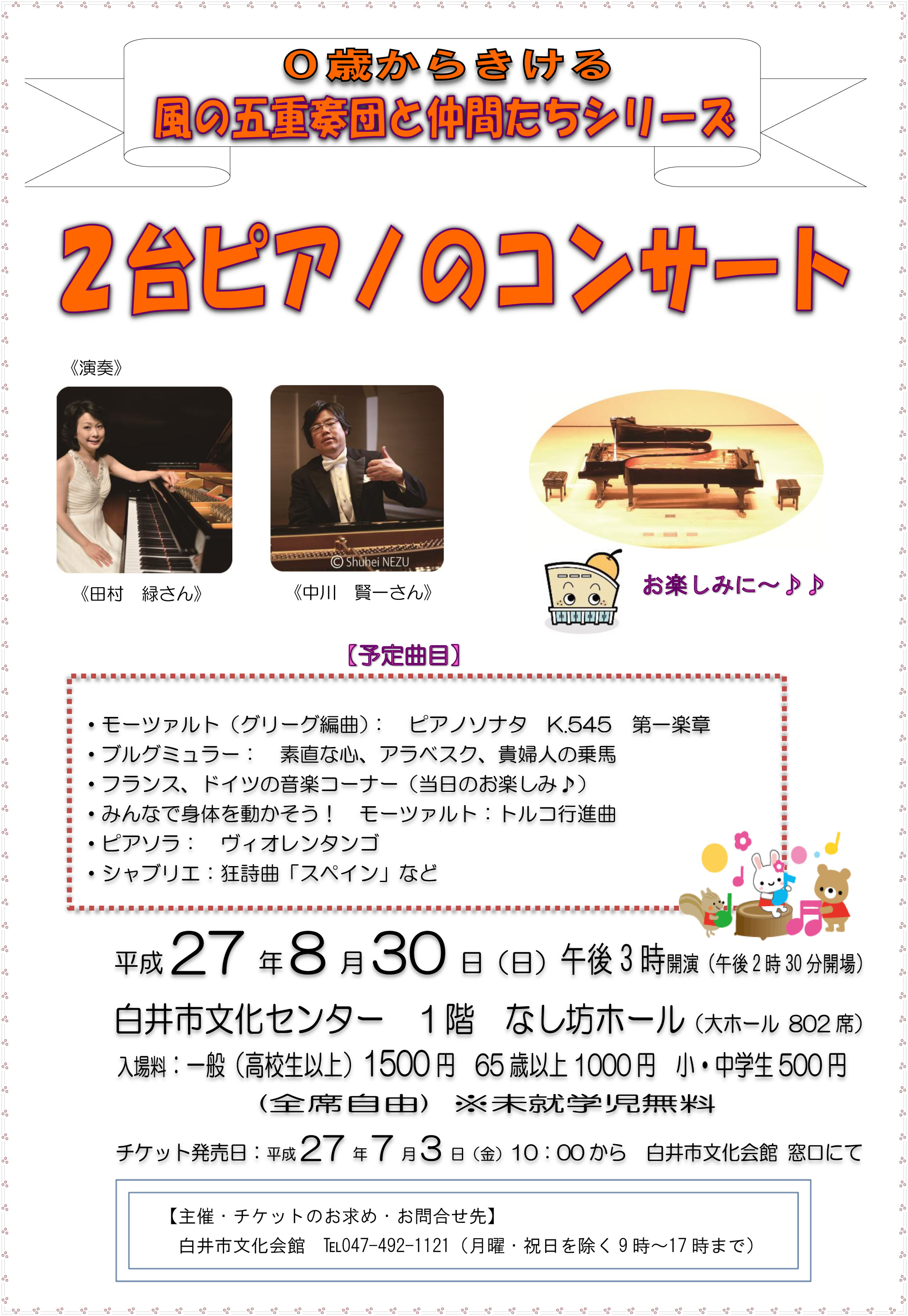 【全席指定】 会員900円 一般1,000円 0歳―中学生500円(2歳以下は、保護者のひざ上に限り無料)