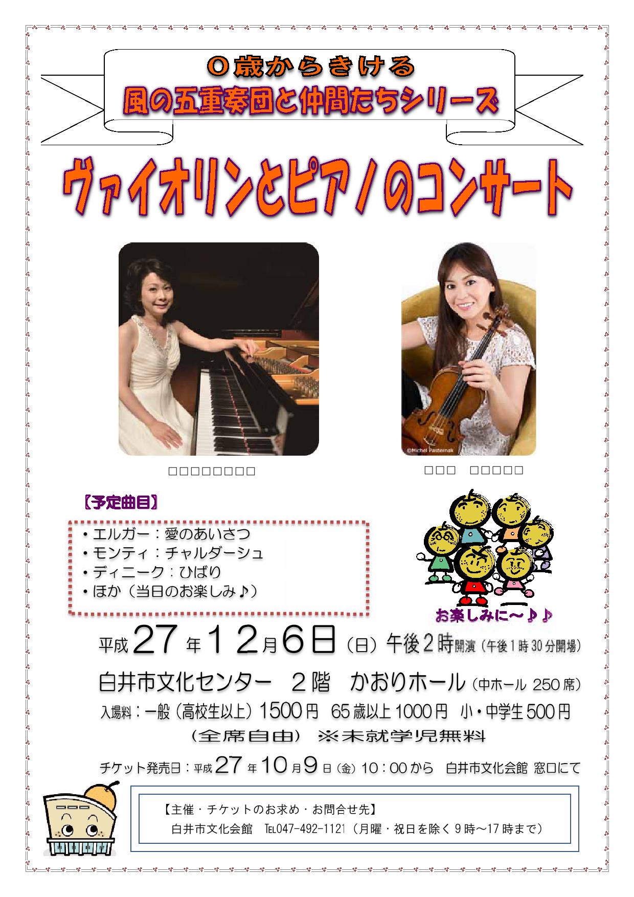 【出 演】 田村 緑(ピアノ)・神谷未穂(ヴァイオリン)