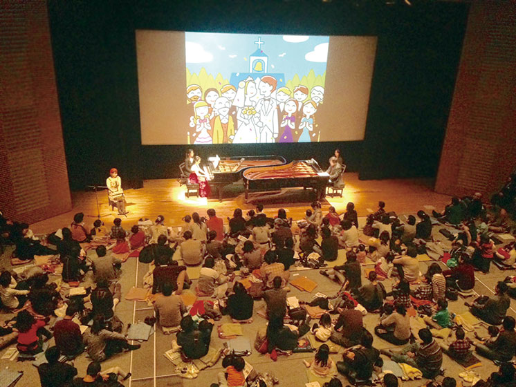 (三鷹市立第一小学校の児童による絵画・アニメーションを投影。全員での演奏)